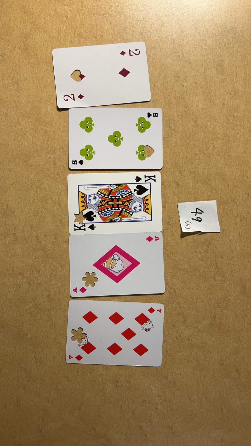 | 49 | 信州福盛そば (5) | 新 ♦️2 ハート/ガ ♣️5 ハート/無印 ♠️K 星/ハ ♦️A 花6/サ ♦️7 桜 | トランプ画像 |