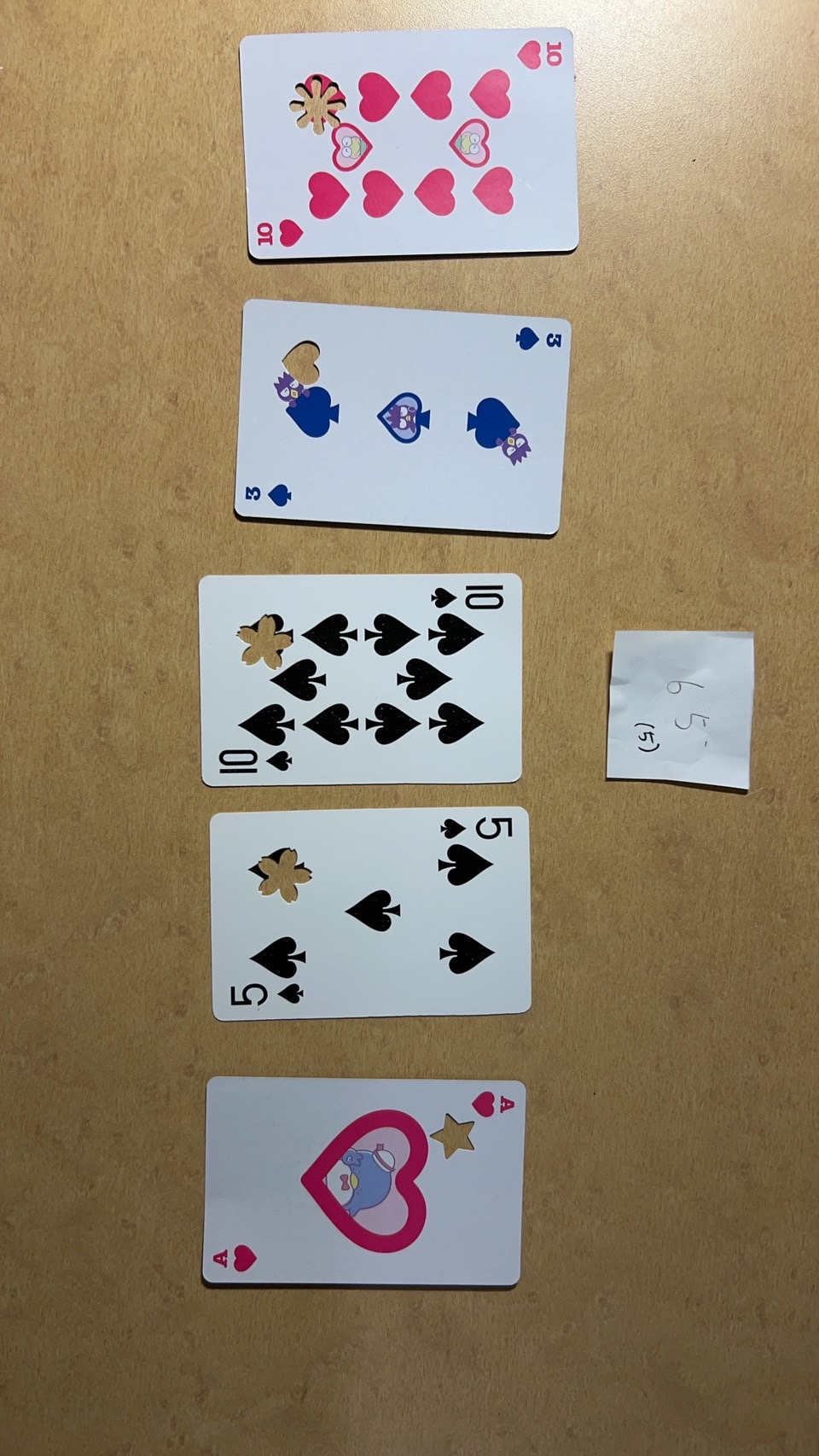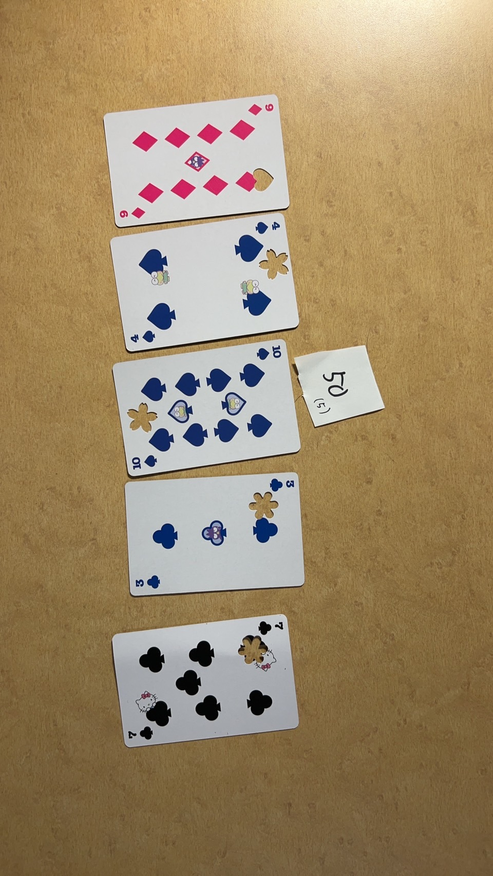 | 65 | 柿渋アメ2個(5) | ハ ❤️10 花8/ ハ ♠️3 ハート/無印 ♠️10 桜/無印 ♠️5 桜/ハ ❤️A 星 | トランプ画像 |